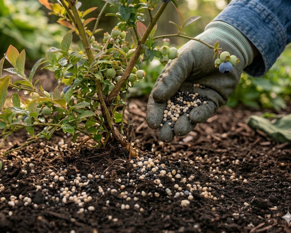 - Verwende spezielle Beerendünger oder Rhododendrondünger, die den pH‑Wert nicht anheben.